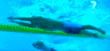 Another notable feature of this swimmer is the speed of the arm stroke cycle. It is very rapid and spends as little time as possible in unproductive positions. The whole cycle takes less than .8 of a second. It also demonstrates a very direct propulsive phase with remarkable speed in the remaining phases.