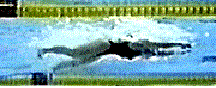 This sequence was recorded at slightly slower than real time. The time for this winning swim was 30.84 seconds.