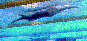 Much of Paul Biedermann's technique in this breathing stroke is similar but has notable differences to that of the non-breathing stroke. However, the duration of the inertial lag is increased by the added breathing action (Frames #7 through #13). As well, the head action appears to be a lift forward (Frame #5), a turn when emerging from or out of the water (Frame #6), and then an extended inhalation with head to the side (Frames #7 through #11). The return of the head into the water from the elevated position causes a large amount of turbulence to stream off the face for about three tenths of a second (Frames #10 through #13). When the head is finally returned into the water (Frame #13), the face turbulence breaks away and flows down the swimmer's front for the remainder of the stroke (Frames #13 through #16). It is this writer's opinion that the amount of turbulence developed through the head action would be equivalent to or more than that created by the surface of any swimsuit or an unshaven body. In other words, the amount of resistive turbulence created by the head action in breathing is considerable and worthy of attention to diminish or eliminate it.