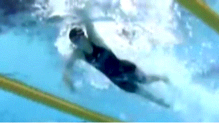 The swimmer's stroke is dominated by a big and furious kick. Since kicking in free swimming does not propel the swimmer, that exaggeration fatigues the swimmer unnecessarily. It also causes the stroke rate to be limited to the length of time it takes to complete six big kicks. Smaller kicks would not require as much time for six to be completed and thus, the swimmer could rate higher. As well, the forces that can be created by small fast kicks are quite small and would not consume as much energy as kicks the size of those exhibited by Allison Schmitt. What should actually happen is that any kicks should occur to counterbalance vertical forces created by the arms. As Forbes Carlile (personal communication) has so eloquently stated, "the legs should dance attendant on the arms".