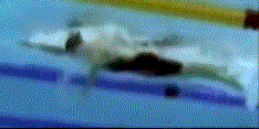 - Frame #10: The head and shoulders are still elevated and supported by the left-arm downward press. In above-water videos of this race, the rise and fall of the front end of the swimmer with the breathing action is quite noticeable. Streamline is disrupted. The kick-lull continues.