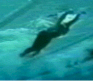 Although there is some head diving and hip elevation in the stroke, it does not seem to be as exaggerated as it is in other women's strokes. This feature will never be removed from this stroke, but swimmers should attempt to minimize it rather than emphasize it as is demonstrated here.